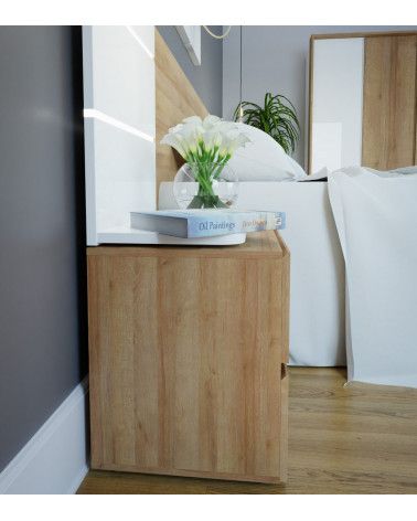 Mesita de noche de 2 cajones LENY, en roble, proporciona mucho almacenaje en la zona de dormitorio y descanso. Además, combina con toda la colección de dormitorio LENY.